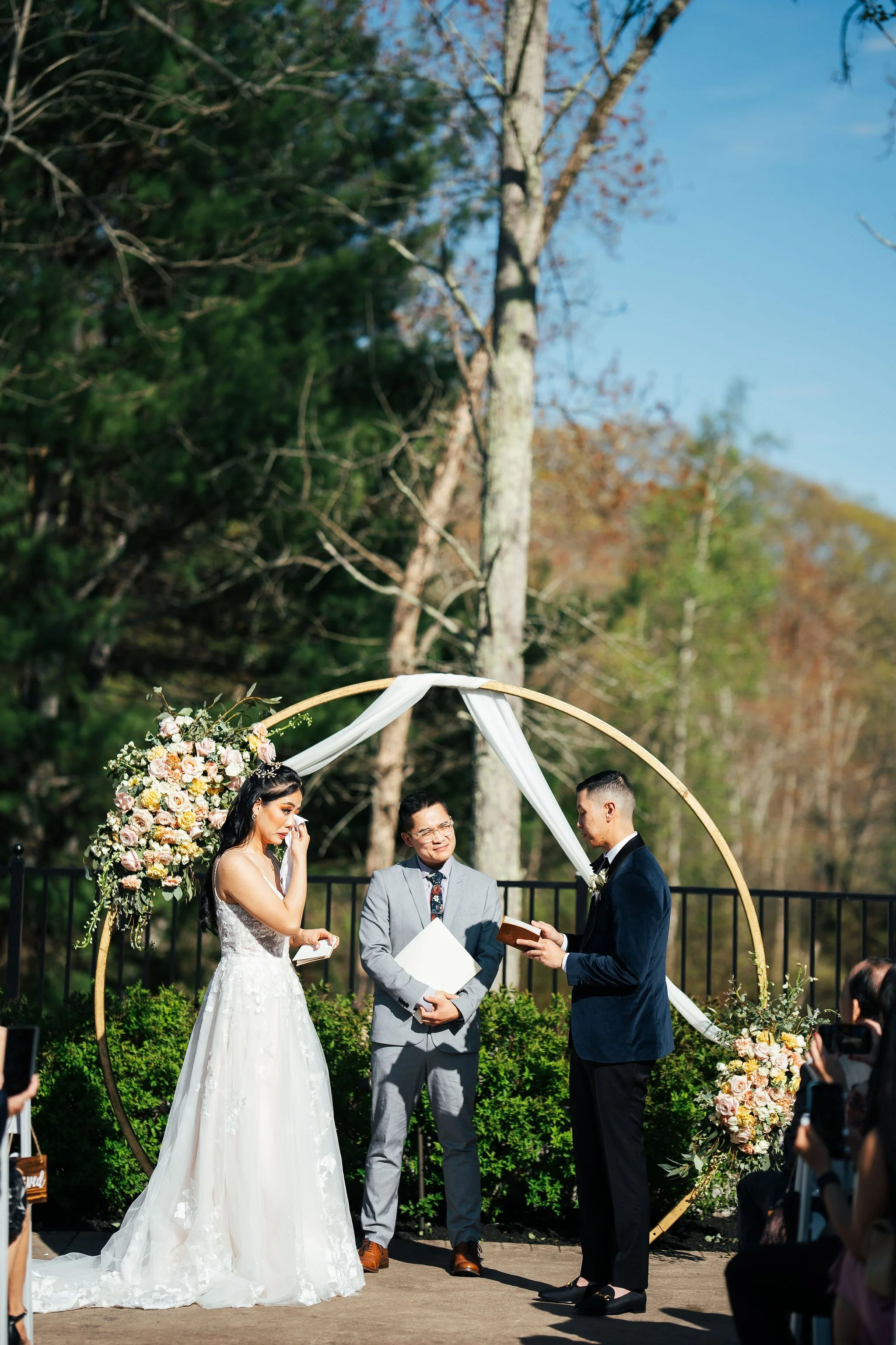 The ceremony took place in a secluded corner of the Briar Barn's lush grounds, adorned with fragrant flowers and rustic décor. Against the backdrop of nature's beauty, Michael and Rosanna exchanged their vows, promising to support and cherish each other for a lifetime. The heartfelt ceremony was officiated by a close friend, adding a personal touch to the union. As the couple sealed their commitment with a kiss, cheers erupted from the gathered guests, marking the beginning of a new chapter in their lives.