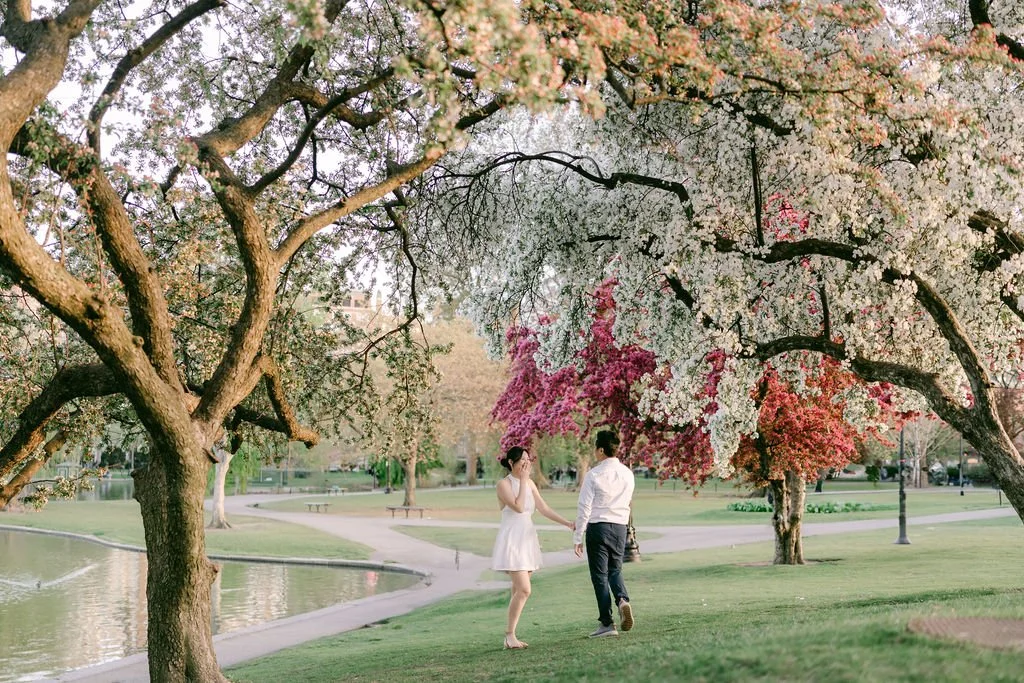 Spring in Boston is one of the most beautiful times of the year, and Melinda and Jake’s engagement session captured it perfectly. With soft light, blooming trees, and quiet streets, it was the ideal setting for a romantic Boston spring engagement.